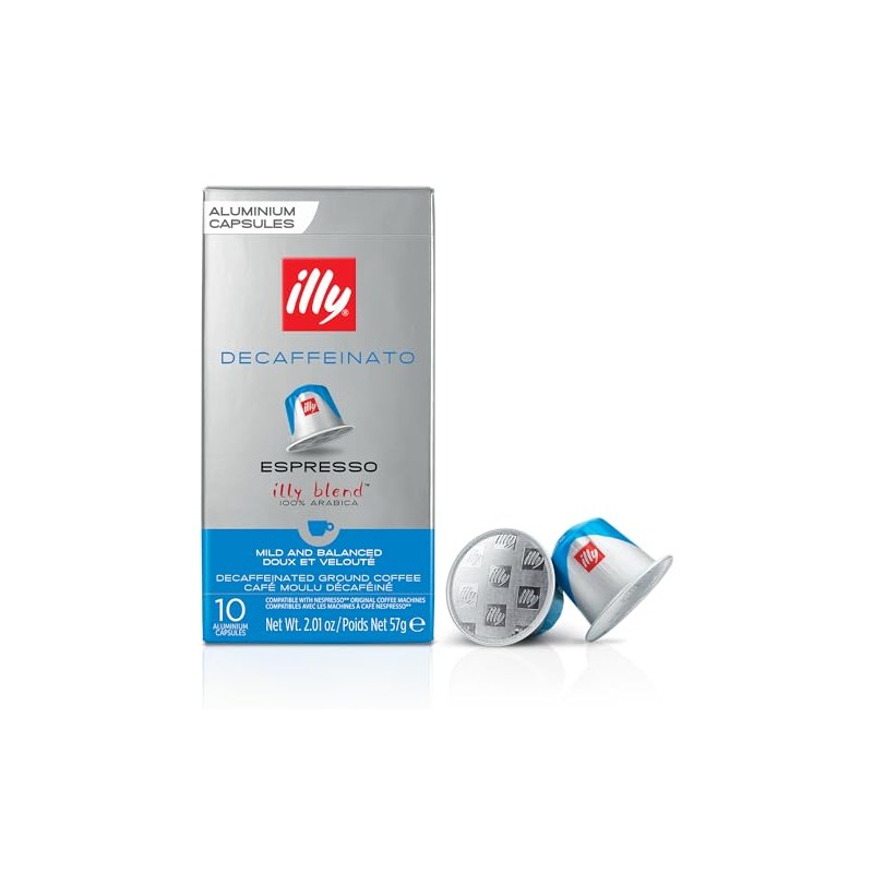 illy Aluminum Espresso Capsules - Compatible with Nespresso Machines - Decaf Coffee - Mild & Balanced - Notes of Caramel and Chocolate - Single Serve Capsules - 10 Count (Pack of 5)