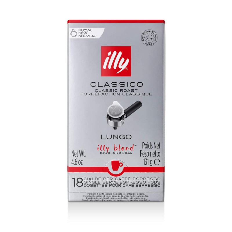Illy Coffee E.S.E. Pods, 100% Arabica Bean Signature Italian Blend, Classico Lungo Medium Roast, 18 Count, Single Pack