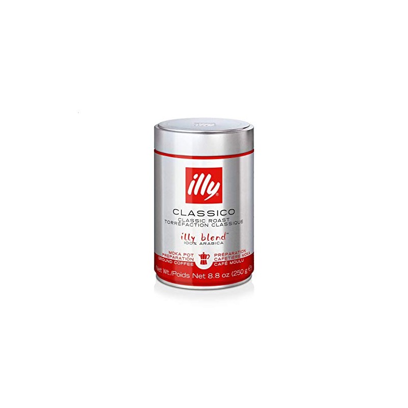 Illy Moka Ground Coffee Medium Roast Tin with Silver/Red Sleeve 12 x 250 g Ti...