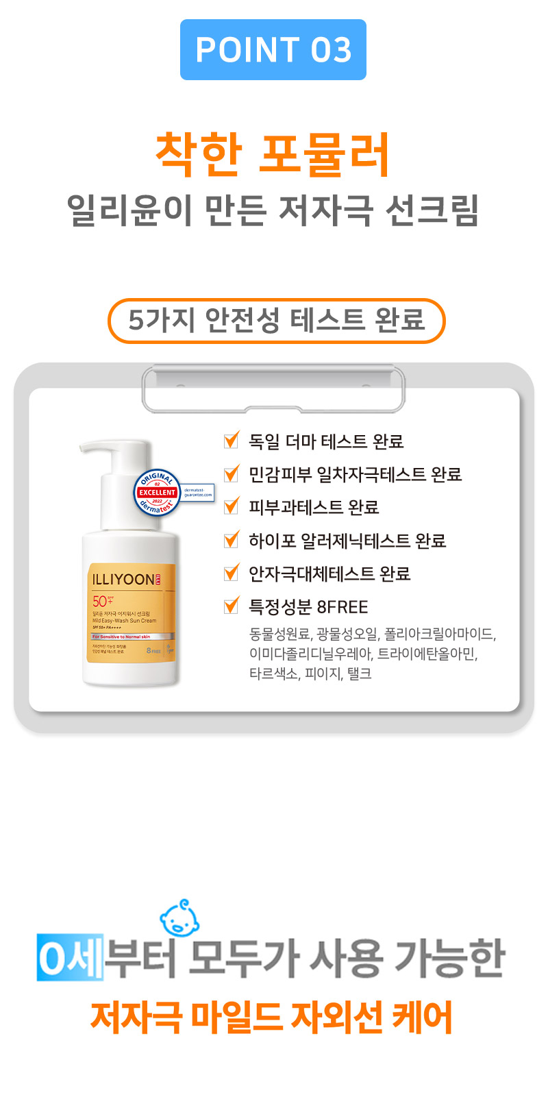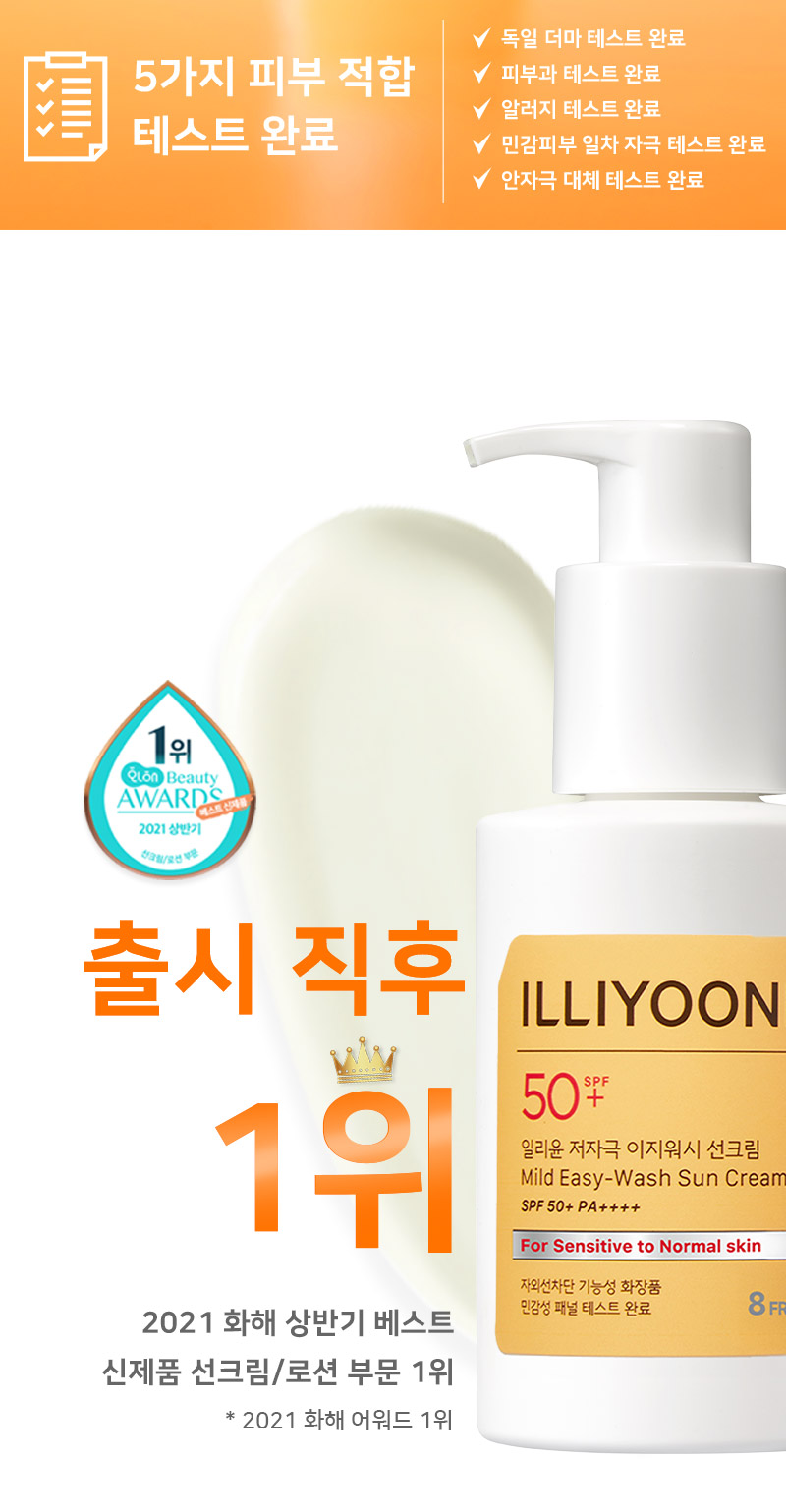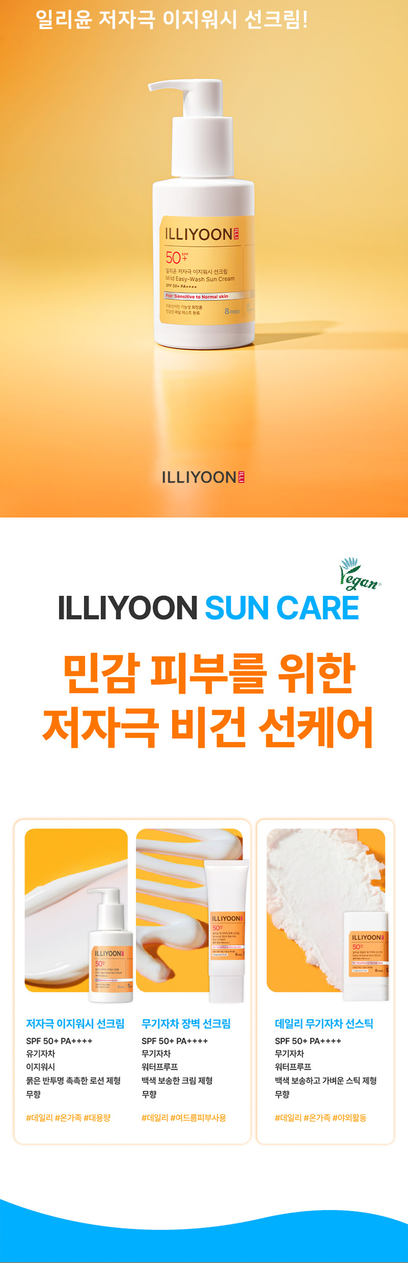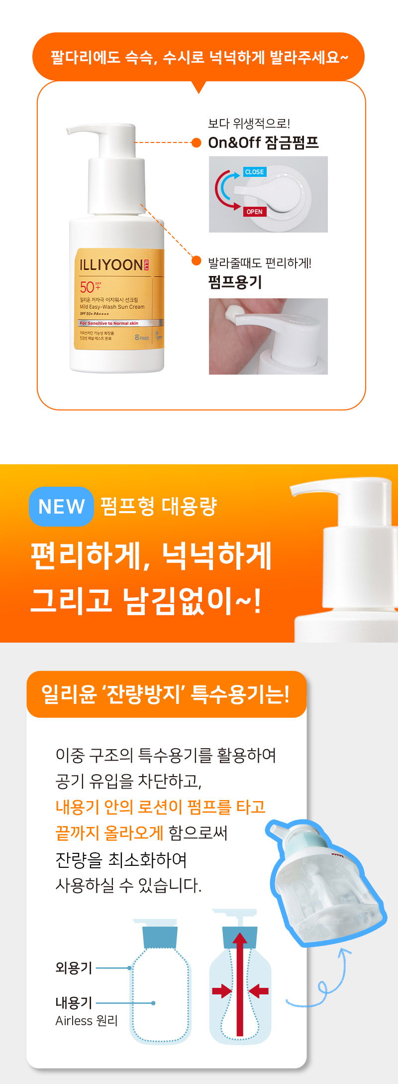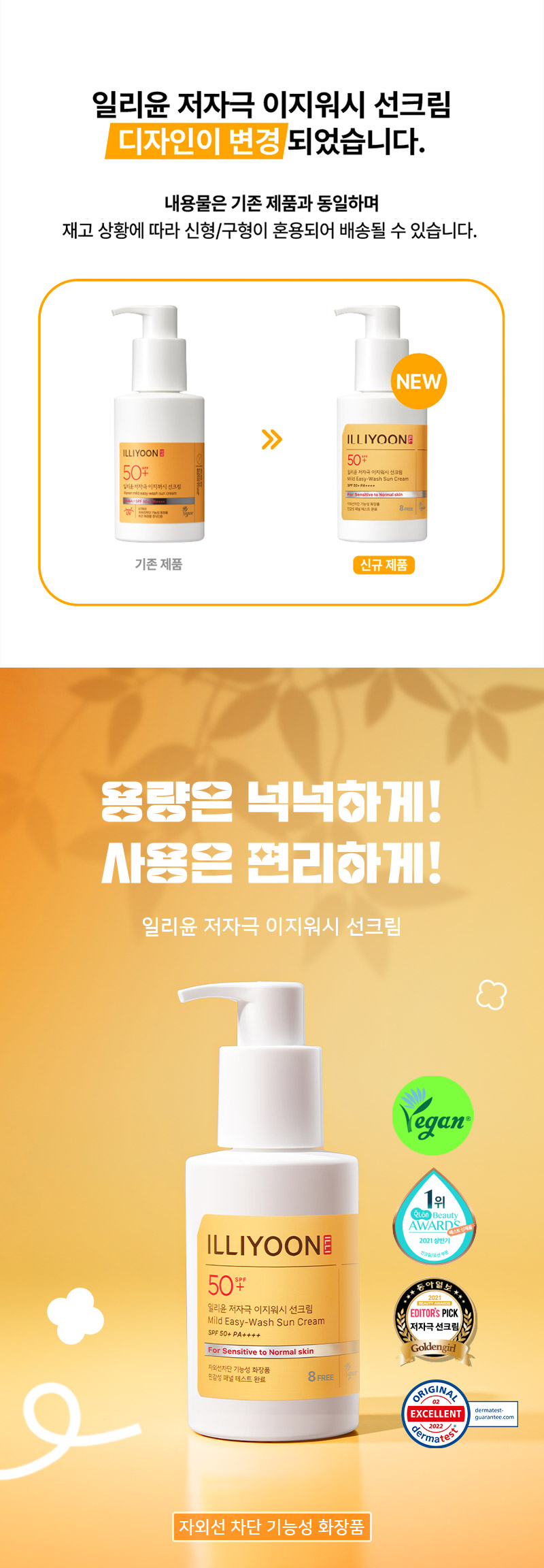 Illyoon 저자극 이지워시 선크림 150ML 1입 Low Irritation Easy Wash Sunscreen 150ML 1 Piece