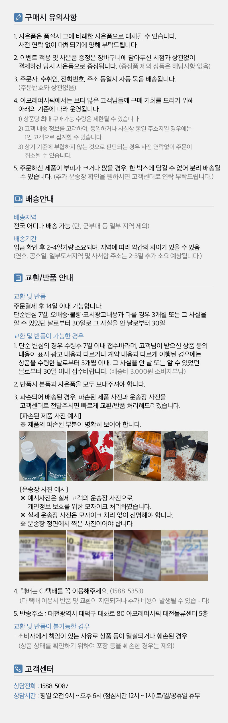 특이 사항 배송, 변경, 반품 환불에 대한 문의는 위 연락처로 문의 주세요.
