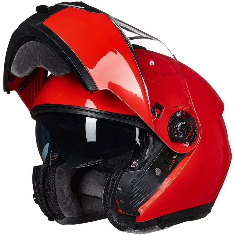 - Double Visors:Wide visual field clear visor & inner sun visor,Tough & high elastic front visor for great impact resistance; Internal dark visor for additional eye protection from the sunlight and can be easily controlled with a switch.