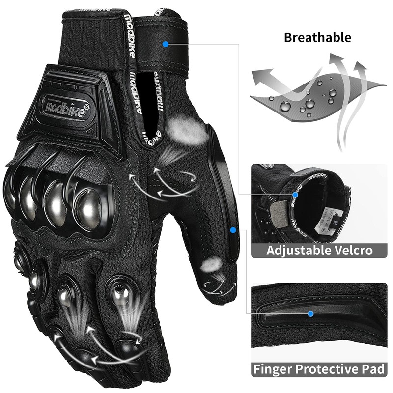 ILM Alloy Steel Touchscreen Bicycle Motorcycle Motorbike Powersports Racing Gloves (XXL, Black) Model 10C