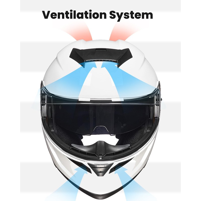 - Enhanced Ventilation: The top ventilation vents can can easily intake and exhaust air to keep cool. Multiple vents designed to ensure air circulation and avoid your visor from fogging up.