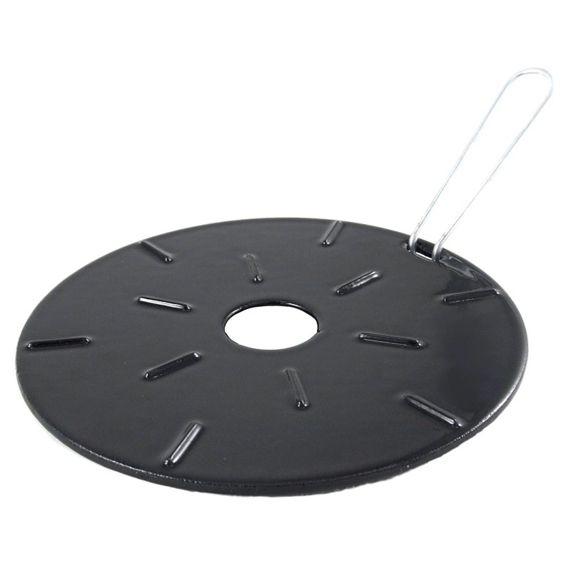 This convenient heat diffuser is a must-have for all cooks! Made of enameled cast iron, It absorbs direct heat and distributes it evenly and consistently, eliminating the need for frequent stirring, while cutting down on sticking and burning. The diffuser is suitable for all types of cookware, from stainless steel to Ceramic, and can be used on most burners. Includes removable stainless steel handle. Not dishwasher-safe. Wipe to clean. Not induction-ready.