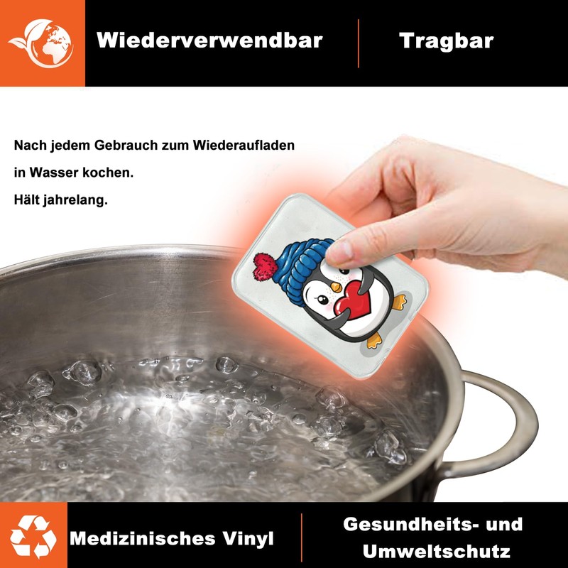 - Reusable hand warmer: Before next use, wash the hand warmer for approx. Place in boiling water for 10 minutes and allow to cool. The pocket warmer is ready to use again. Until the crystals have completely liquefied again