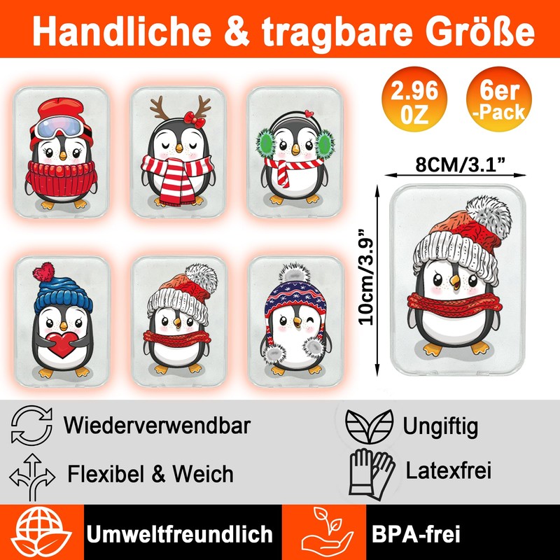 - Perfect as a penguin hand warmer: the hand warmer is also perfect as a Christmas for children and adults. The size is super handy, compact and weighs only approx. 170 grams. Our hand warmer set contains 6 hand warmers. Contains 4 penguin hand warmers and 2 owl hand warmers. Dimensions: 10 x 8 cm each.