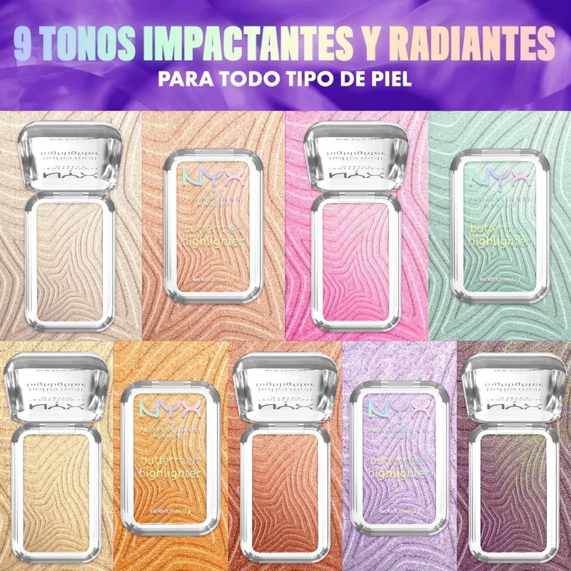 Consigue un brillo radiante y natural con el Iluminador Buttermelt de NYX ✨. Su fórmula cremosa se desliza fácilmente para un acabado luminoso de hasta 12 horas. 💖