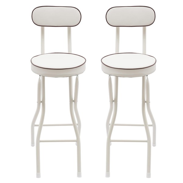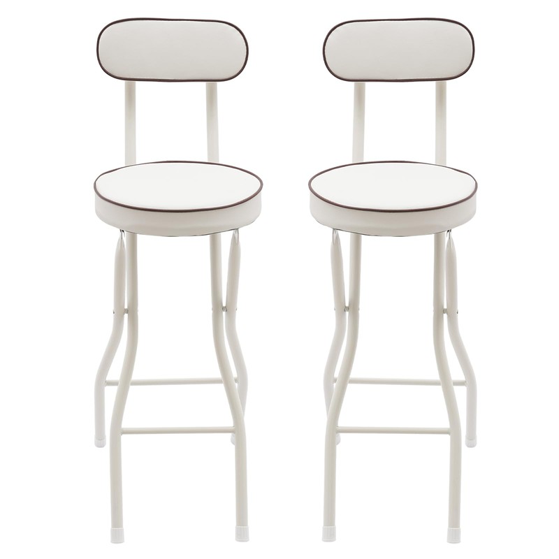 ILWorkTLs 2 Pcs Folding Stool,Cushioned Padded Foldable Stools, Portable Bar Chairs with Back,White
