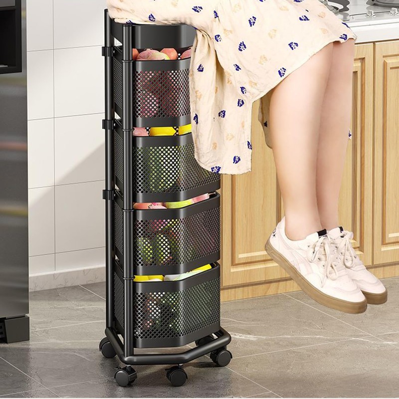 ILWorkTLs 4 Tier Rotating Storage Rack with Removable Basket and Wheels,Kitchen Cart for Fruit Vegetable,Black