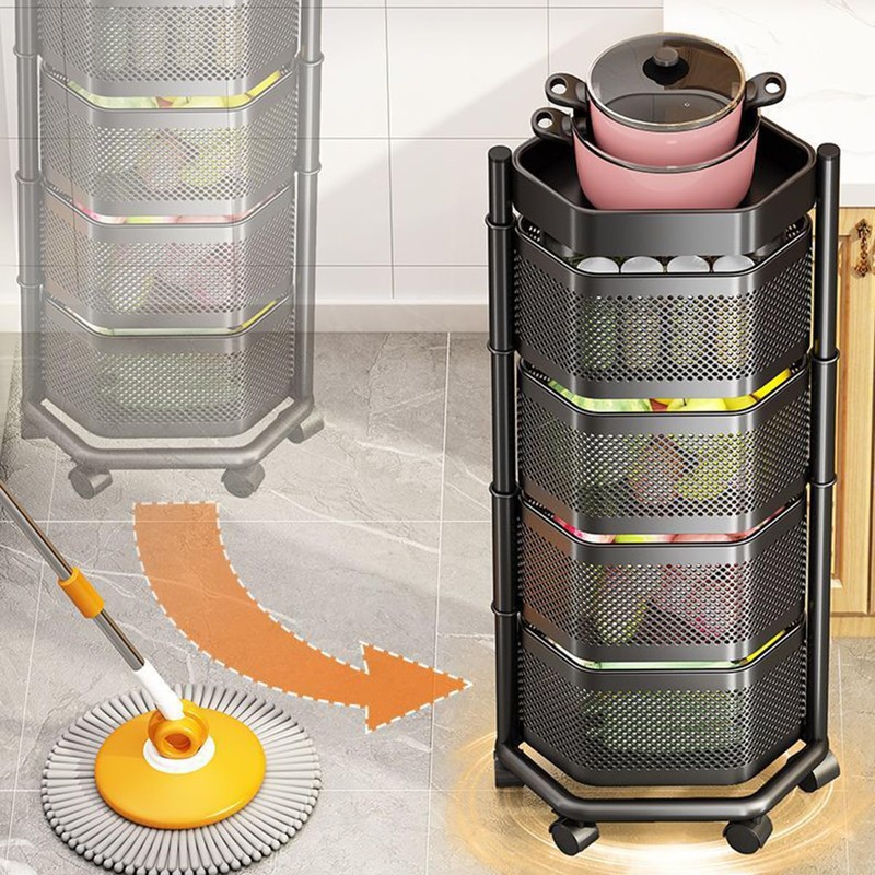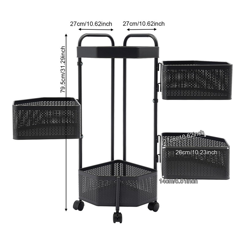 - [Thoughtful Design] The open and rotatable design allows easy access to utensils, fruits and vegetables, etc., while the hollow and raised mesh baskets ensure air circulation.