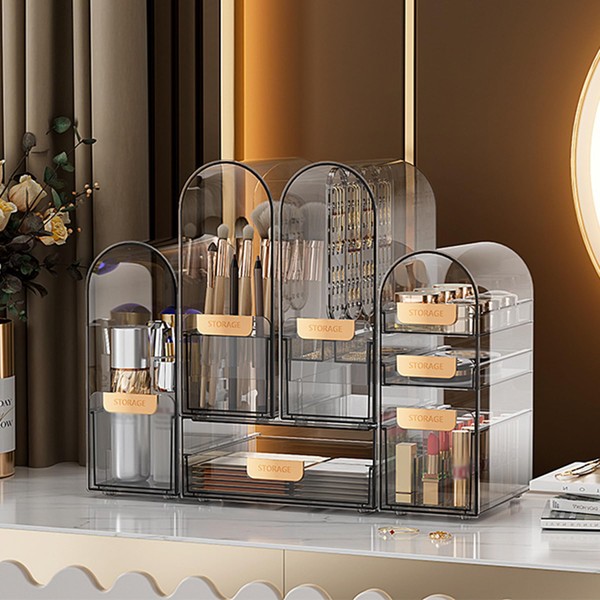 - [Thoughtful Design] The taller drawers (9.84 inches) are designed to hold taller cosmetics and ensure smooth opening and closing. The translucent design allows you to see the contents of each section so you can access them in a timely manner.