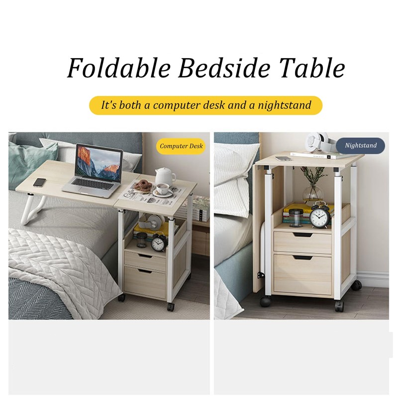 - [Multifunctional] The large open compartments above the drawer and the drawer can store books, documents and more to keep your room organized. The top panel folds down into a nightstand or unfolds to provide a spacious desktop (39.37*15.75 inches) on your bed for laptops and books.