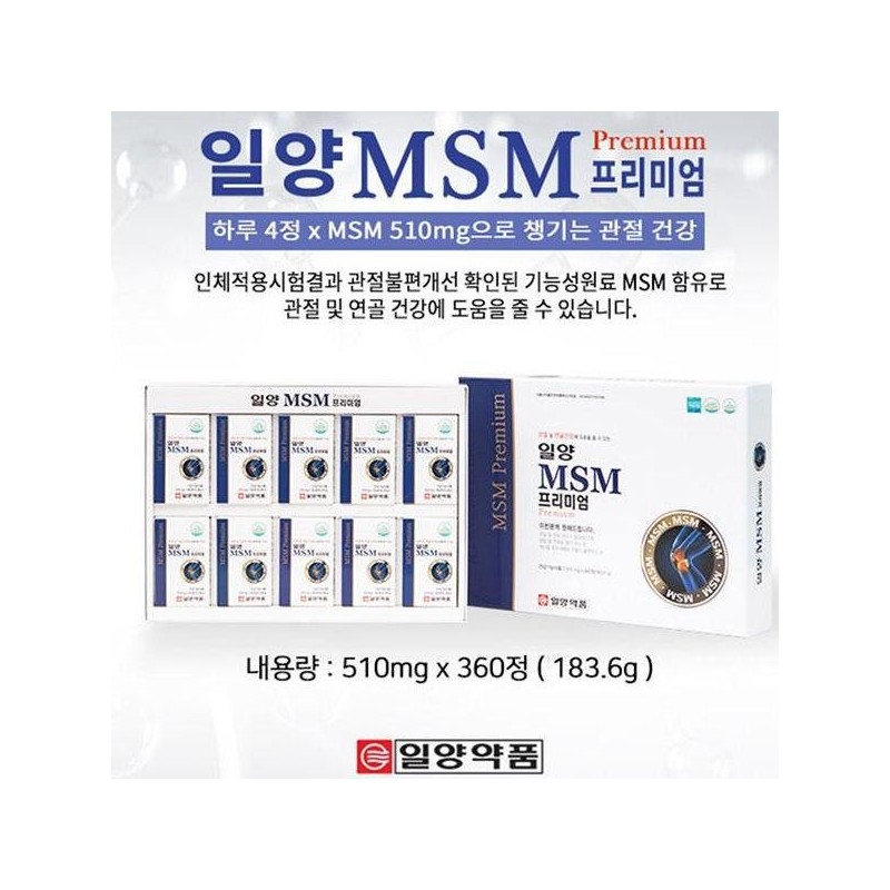 Ilyang Pharmaceutical MSM Premium 360 tablets, 3-month supply, improving degenerative joint cartilage pain, 1 set, 360 tablets, 3-month supply / 일양약품 MSM 프리미엄 360정 3개월분 퇴행성 관절 연골 통증개선, 1세트 3개월분 360정