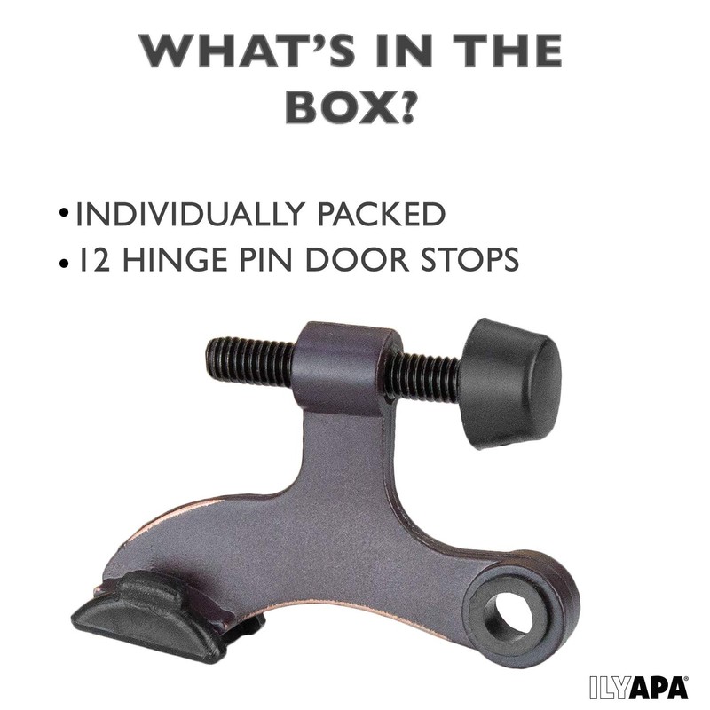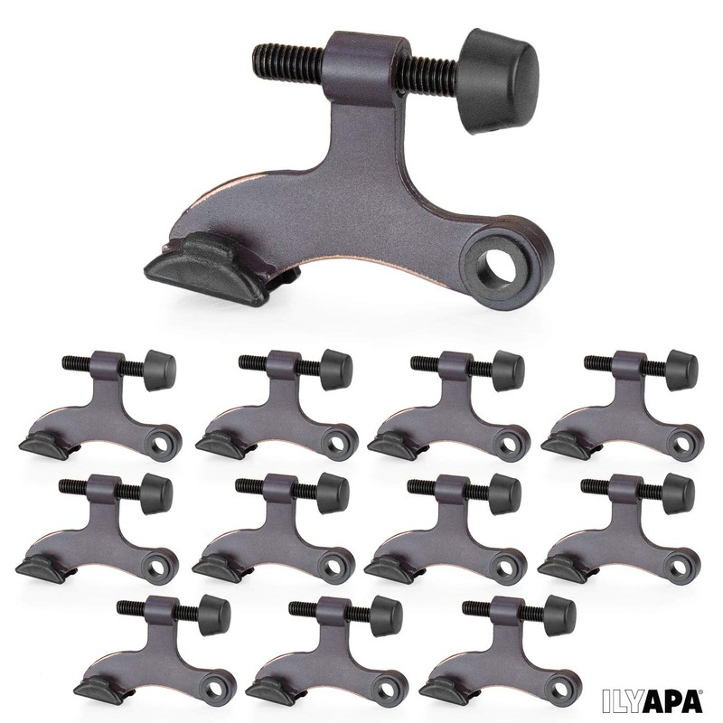 Ilyapa 12 Pack Hinge Pin Oil Rubbed Bronze Door Stops -Heavy Duty Adjustable Door Stopper 2-1/2" x 1-3/4â,with Black Rubber Bumper Tips