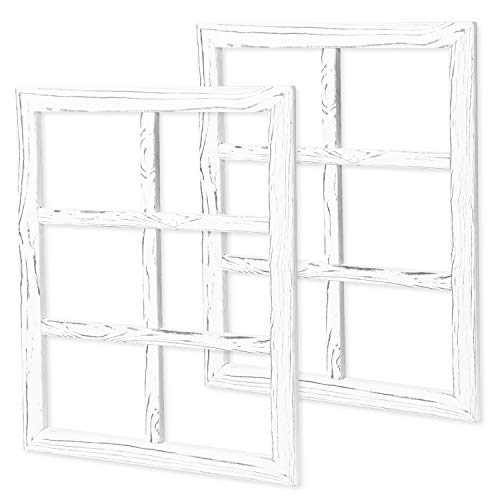 Ilyapa Window Frame Wall Decor 2 Pack - Large 18x22 Inch Rustic White Wood