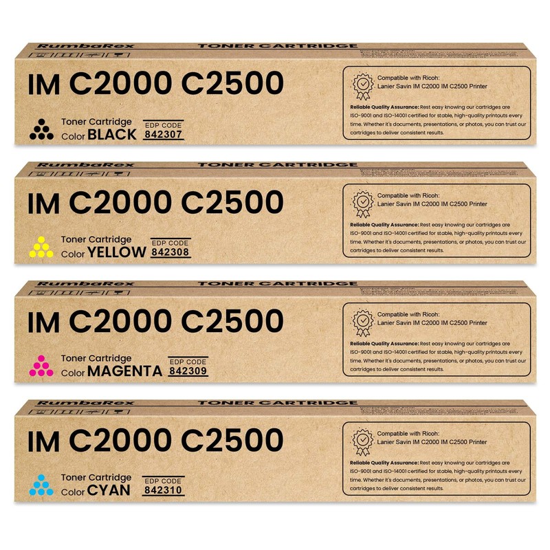 - The Package Contains: IM C2500 IM C2000 Toner Cartridge 4 Pack (Black Cyan Magenta Yellow) 842307 842310 842309 842308