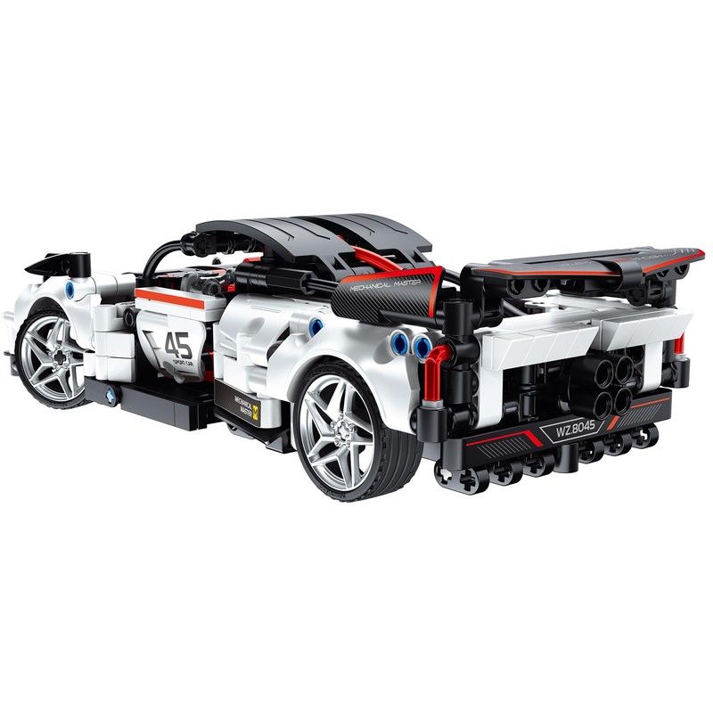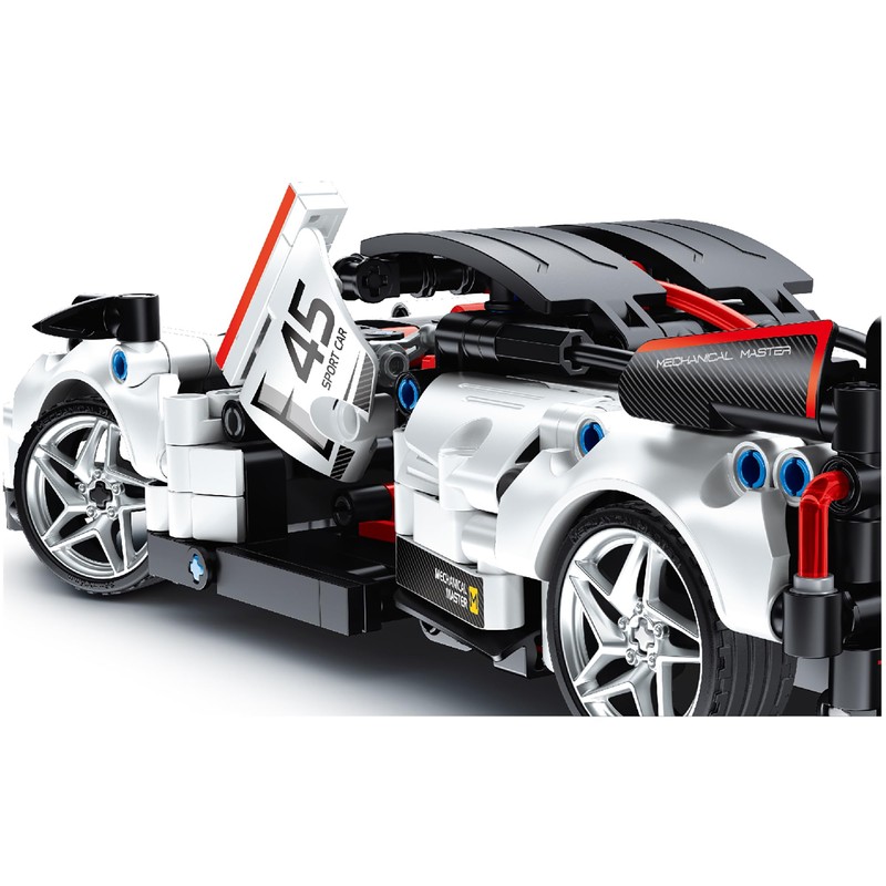 • STREAMLINED SPORTS CAR DESIGN: Experience realistic aesthetics and immersive play with a sleek and aerodynamic sports car design that captures the essence of high-performance vehicles. Styled with white, black & red parts and and silver rimmed wheels.