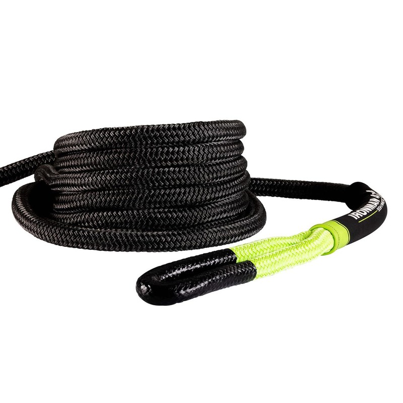 STRONG AND DURABLE: Ironman 4x4 off-road kinetic recovery ropes are made from high-quality nylon webbing that is both strong and durable. With a break strength of 20,900 pounds, you can be confident that it will be able to handle even the most off-road recovery situations.STRETCHY AND SAFE: Designed to stretch under load with a 30% stretch rate, you can be confident that this kinetic rope will help to absorb shock and prevent damage to your vehicle. This is perfect for recovering a vehicle in an off-road environment, where there is a lot of resistance.EASY TO USE: The Ironman 4x4 kinetic recovery rope is easy to use and comes with everything you need to get started, including protection sleeves, a mesh drying bag, velcro wrap, and an instruction manual for proper use.COMPACT AND PORTABLE: You can easily store this in your vehicle and add to your collection of 4x4 gear. This makes it the perfect recovery tool for off-road enthusiasts, emergency personnel, and anyone else who needs to be prepared for the unexpected during any outdoor adventure.SpecificationsMaterial:100% NylonColor:Black / Green with anti-abrasion coating on loopsSize (L x W):30-ft. x 0.8" (9m x 20mm)Breaking Strength:20,900 LBS (8,600kg) Stretch Rate:30%