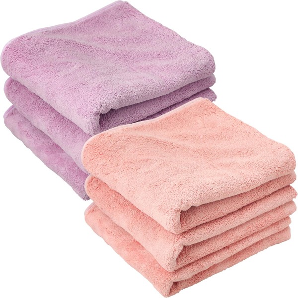 imaa Hair Drying Towel, Microfiber, Double Soft, Absorbent, Quick Drying, Vacuum Compression Pack, 3 Pink x 3 Lavender