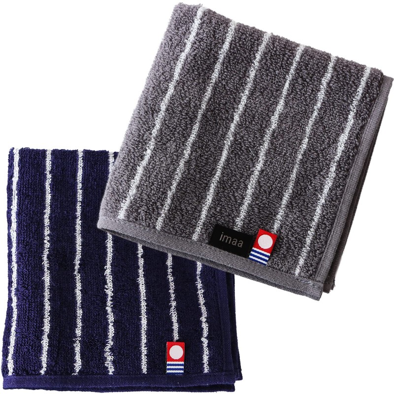 imaa Imabari Towel Handkerchief, Easy Carry Hand Towel, 100% Cotton, Made in Japan, Certified Quality, Colors: Navy, Pinstripe Gray