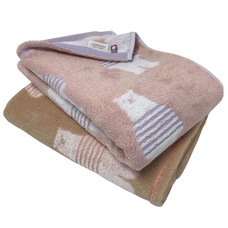 Imabari Towel, Bath Towel, Set of 2, Brand Certification, 23.6 x 47.2 inches (60 x 120 cm), Pink, Brown, Border Bear Pattern, Cute, Fluffy, Absorbent, Quick Drying, 1 Pink, 1 Brown