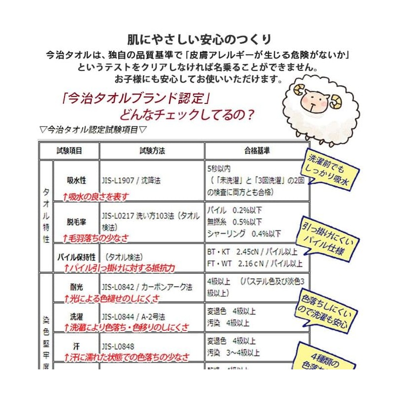 - Products certified by Imabari Towel Industrial Association have been marked with the brand mark designed in red, blue and white. This brand mark is made in Imabari, the largest towel production in Japan, and is only given to towels that have passed their own quality standards set by the Imabari Towel Industrial Association