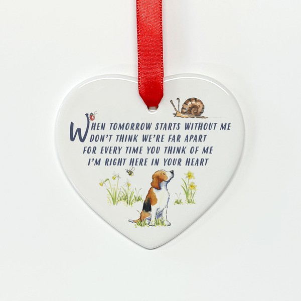 - Crafted from high-quality ceramic with a glossy finish and ribbon hanger, this Beagle dog heart provides a lasting memorial keepsake to remember a beloved pet with love and comfort.