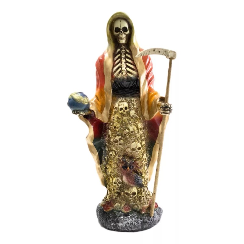 Imagen De Resina Santa Muerte Con Falda De Cráneos.