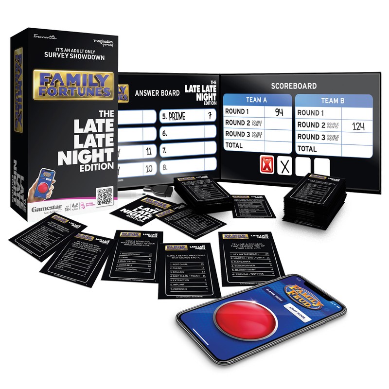 Imagination Gaming Late Late Night Family Fortunes Card Game, Get Ready for a Family Showdown, 150 Question Cards, 50 Fast Money Cards, Complementary App with Sound Effects from the Show