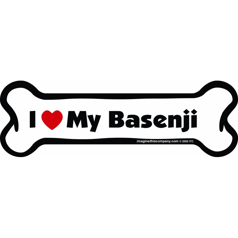 Imagine This Company I Love My Breed Bone Shaped Pet Magnet; Removable Magnets for Cars, Fridges, Lockers & More, Stylish Pet Inspired Car Accessories, 2 x 7 inches, 1 Item, White/Black, Basenji