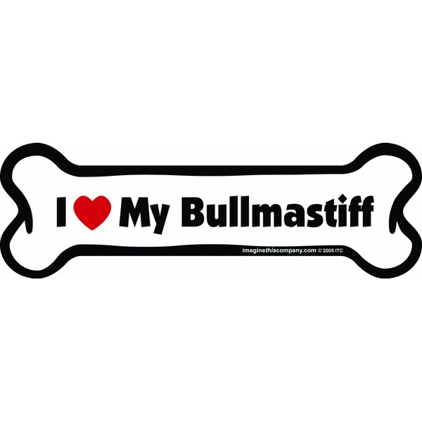 Imagine This Company I Love My Breed Bone Shaped Pet Magnet; Removable Magnets for Cars, Fridges, Lockers & More, Stylish Pet Inspired Car Accessories, 2 x 7 inches, 1 Item, White/Black, Bullmastiff