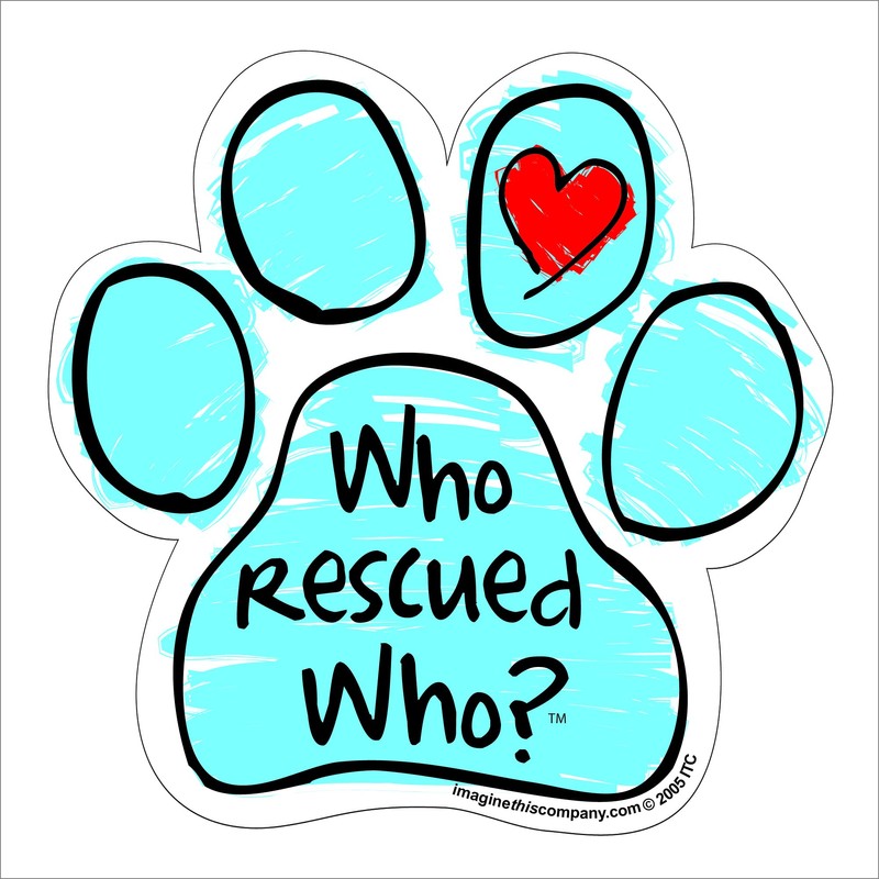 Imagine This D1953 Car and Rescue Decal (Blue "Who Rescued Who?" Paw), 2 Pack