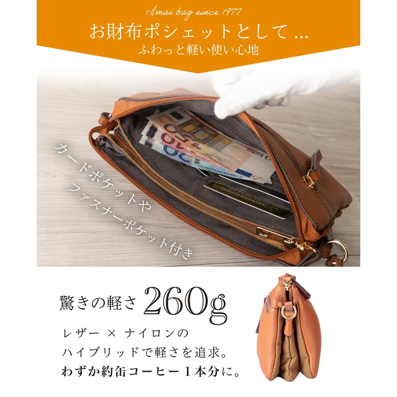 - Shoulder bag made of cowhide leather (leopard pattern is cow split leather). Lightweight at 9.5 oz (260 g), making it easy to carry around. We also recommend putting clutches