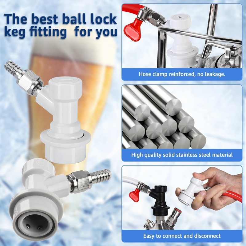 - 【Multi-Purpose Compatibility】Home brew ball lock keg fittings are suitable for most cornelius keg and soda keg tanks, also can be a home brewing adapter of corny & keg coupler . Whether you're a home brewing enthusiast or a professional, our products meet your needs and ensure your brewing experience is seamless