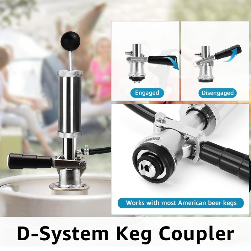 - 【304 Stainless Steel D-Type Coupler】The beer barrel pump is equipped with a D-System keg coupler that can adapt to most American D-system Sankey keg valves, ensuring compatibility with various types of corny keg. No matter which brand of corny keg it is, our Beer keg party pump can be perfectly applied, providing more choices for your party. The design takes into account the convenience and practicality of users, allowing you to enjoy the joy of beer without worrying about compatibility issues.