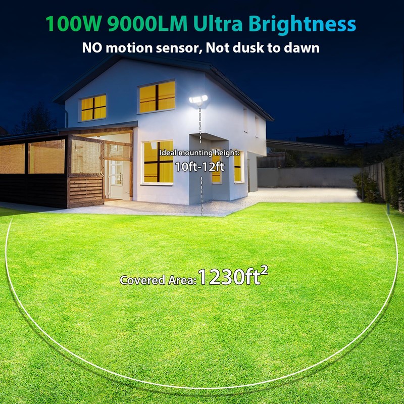 - 【3 Adjustable Heads & 270° Lighting Angle】All 3 heads of the flood lights can be easily rotated to different angles as your requirements. Thus this led flood light can cover a wider lighting area up to 1977ft². Add extra safety to your home!