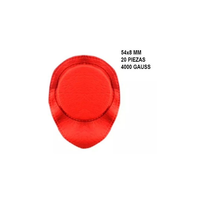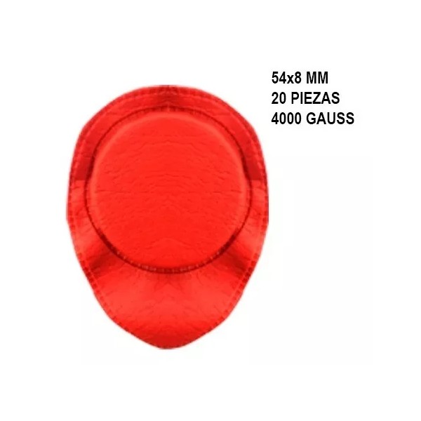 20 IMANES REDONDOS 54X8 MM FORRADOS Y SELLADOS EN VINYL ROJO Y NEGRO