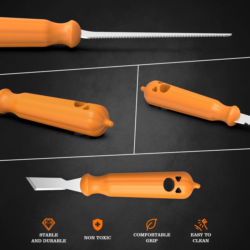 - Versatile: This pumpkin carving knives can be used to make jack-o-lanterns during Halloween or other celebrations. The carving knife can accurately cut the hard outer skin of the pumpkin to achieve complex patterns and designs. In addition to pumpkin carving, it is also suitable for cutting and carving other fruits and vegetables, such as watermelon, melon, etc., with diverse uses