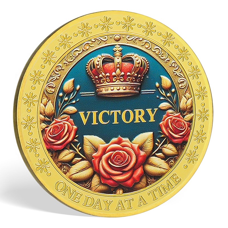 - UNIQUE DESIGN: AA sobriety coins of alcoholics anonymous is beautifully patterned with a combination of crowns and flowers. The crown symbolizes the glory and renewal of the ex-alcoholic's victory over alcoholism, and represents the kingly attitude of the ex-alcoholic who has regained control of his or her life. The flowers symbolize beauty, hope and renewal, just as the recovering alcoholic's new life is full of vigor and vitality.