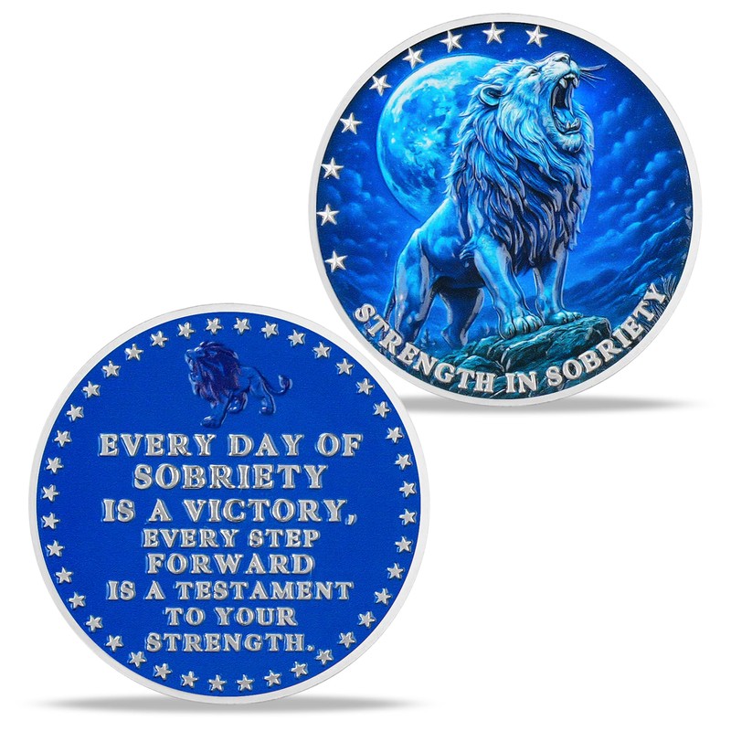 - 🦁 Symbol of Strength in Sobriety: Featuring a roaring lion under a full moon, this sobriety coin symbolizes courage and inner power. The front is engraved with "STRENGTH IN SOBRIETY," representing each step taken on the path to recovery. This recovery medallion is more than a token—it's a daily reminder of resilience and transformation