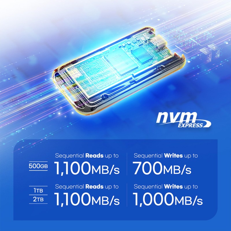 - Backup, edit, and manage high-resolution photos and videos with a maximum read speed of 1,100MB/s and write speed up to 1,000MB/s