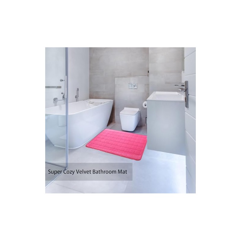 Super Absorbent: The super-absorbent bath rug's microfiber surface quickly soaks up an impressive amount of water, strong memory foam hold the water firmly avoid too wet on your feet. Our smooth and lustrous velvet make up the top layer of this rug; extremely soft and cozy for spa like comfort at home