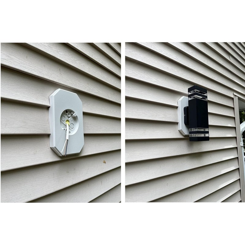 - Built-in electrical box design ensures UL listed installation. Fast and easy to install after siding is up. extured, this siding mounting block is in black and surface upgrade can be painted to match the color of the vinyl siding or light. paintable surface.