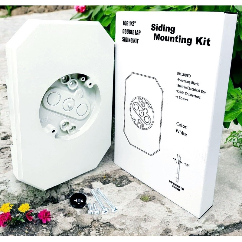 - Kit includes mounting block with built-in electrical box, NM cable connector, and 4 screws. UV rated plastic for long outdoor life. This Light Fixture Siding Mounting Kit Approval UL