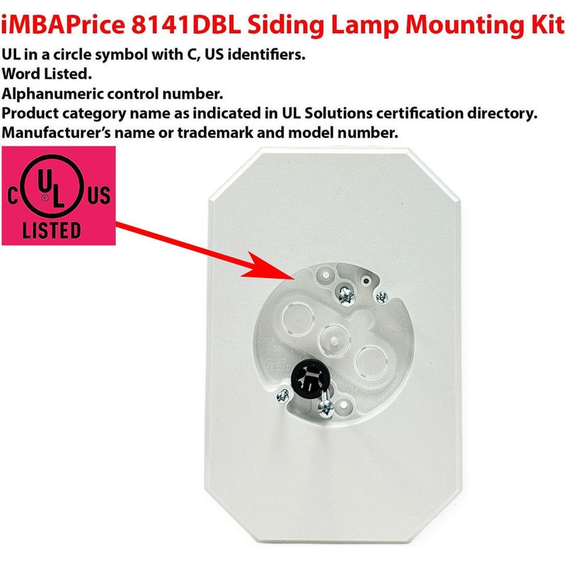 iMBAPrice 8141DBL-BK-1 Black Vinyl Siding Lamp Mounting Kit, UL Listed with Built-in Electrical Box for 0.5 Inch Outdoor Double 4 Inch Siding LAP 1/2 Inch Vertical Double Siding LAP