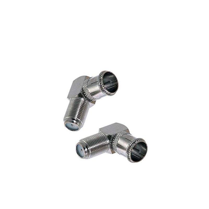 - (Pack of 2) Right Angle Connectors: Screw F-Type (Female) -to- Push On F-Pin Type (Male)
