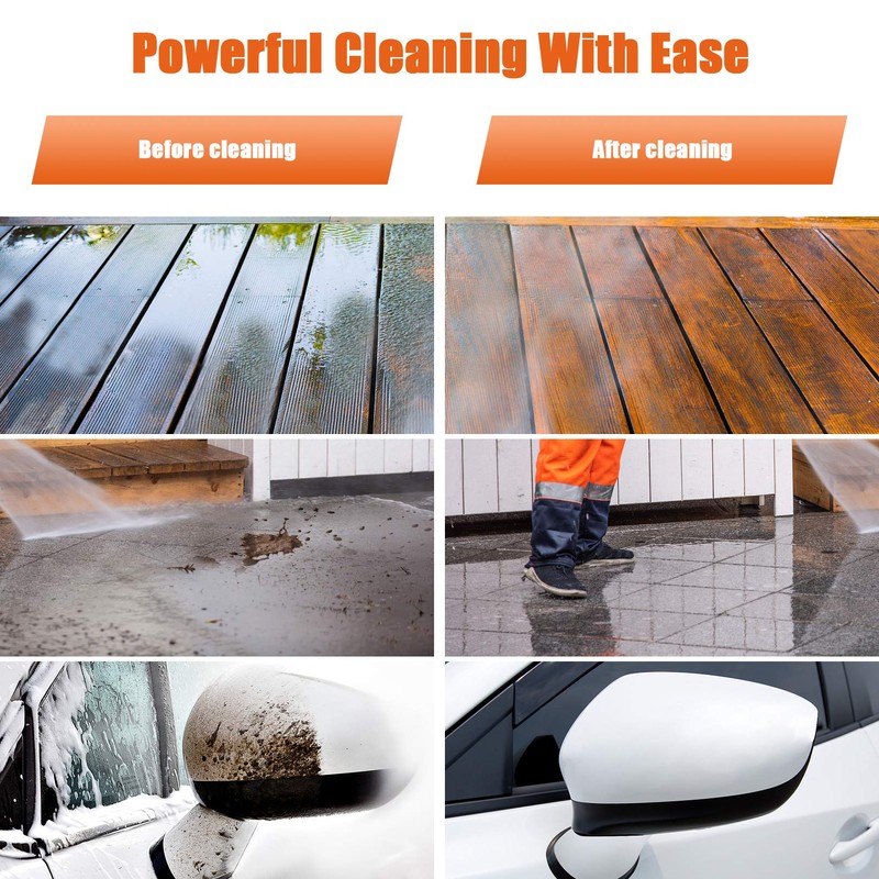 - POWERFUL 2000PSI PRESSURE WASHER: Compared with others, the maximum pressure of our car washer can reach 2000PSI, powerful 1800 Watt universal motor generates max 2000 PSI water pressure at 2.0 GPM water flow for max cleaning power. Our electric pressure washers are ideal for quickly and easily removing dirt, such as cleaning decks, terraces, driveways, siding, sheds, cars, outdoor power equipment, and so on.