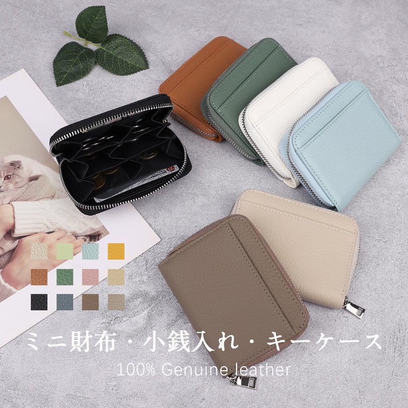 imeetu Mini Wallet, Coin Case, Key Case, Coin Purse, 6 Compartments, Genuine Leather, Compact, Lightweight, Convenient, Small, Genuine Cow Leather, Multifunctional, Small Items, Simple, Casual,