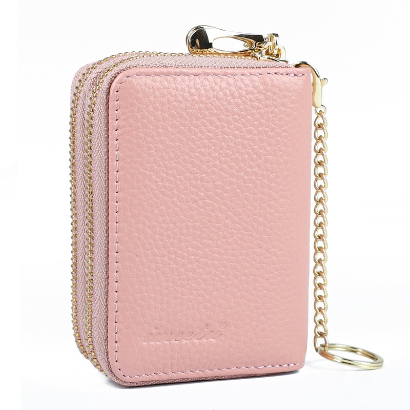 imeetu Rfid Credit Card Holder,Genuine Leather Businese Card Case,Rfid Blocking Wallet for Women & Men, Max - Pink, Small, Classic